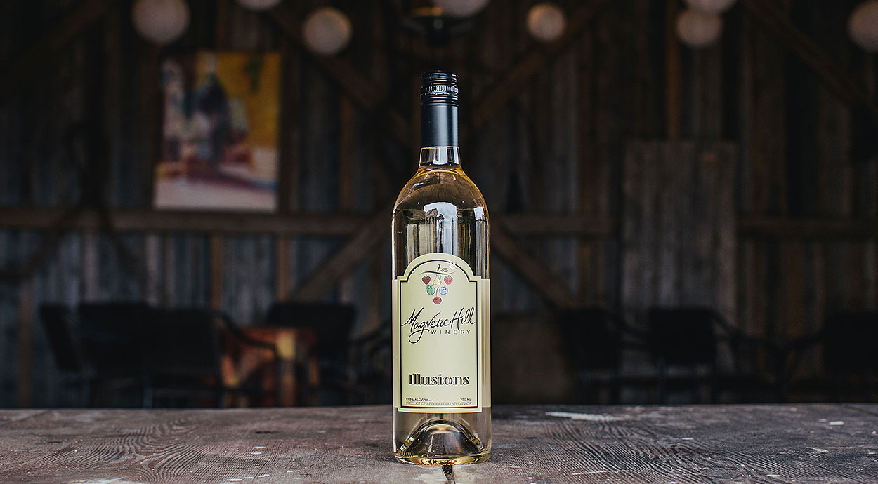ILLUSIONS, du nom de la célèbre illusion d'optique de Magnetic Hill et de son ingredient secret, se présente comme un vin blanc de style Pinot Grigio moyennement corsé. Cependant, ce vin 100% rhubarbe donne une finale d'agrumes croquante qui se marie incroyablement avec toutes les variétés de fruits de mer. [$14.99]