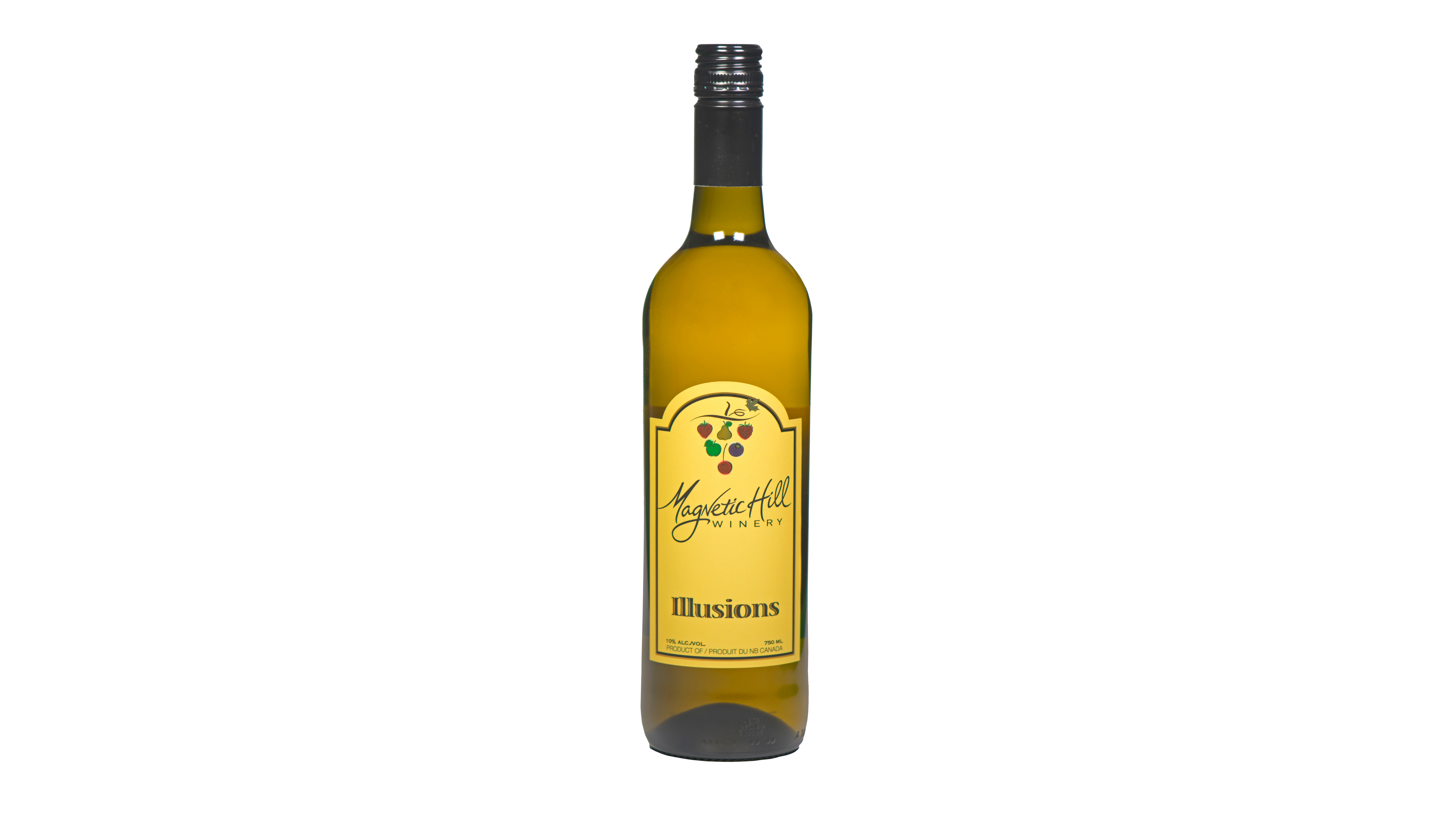 ILLUSIONS, named after the famous Magnetic Hill optical illusion and its secret ingredient, presents like a medium-bodied Pinot Grigio-style white. However, this 100% rhubarb wine gives a crisp citrus finish which pairs incredibly with all seafood varieties. $15.50 tax included.